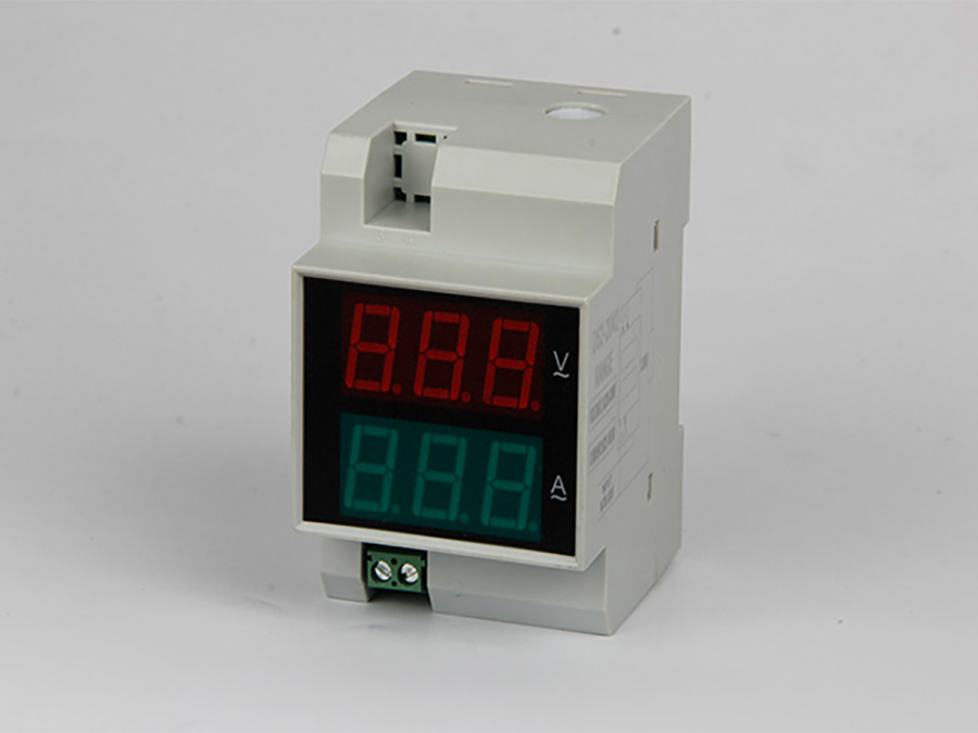 D52-2042型導軌式數(shù)顯交流電壓、電流雙顯儀表是在儀表上同時分別顯示被測量的交流電壓和交流電流。儀表測量電流范圍為99.9A,只需將測量回路的導線穿過儀表右邊小圓孔即可完成電流測量。